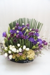 進口紫色鬱金香,粉紅、白色翠珠,黃色素心蘭,古錘,進口白色康乃馨,紫色順風桔梗