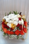 白色大康乃馨 鳩尾蘭 橘紅雞冠 橘色菊花 深山櫻 黃千代