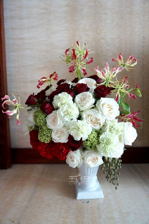 小手球 進口紅白大玫瑰 紅康乃馨 火焰百合